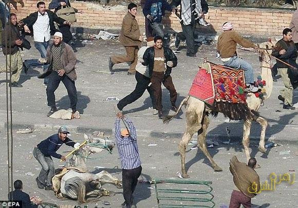 مبارك يهاجم المتظاهرين بالخيول والجمال