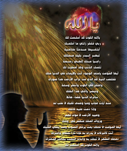 أرجو أن يعجبكم هذا الإهداء تمنيت إن أرفقه مع النشيد ولم أعرف كيف أرفق ملف الريل بلير وهذه من أجمل الكلمات التي سمعتها أيها المؤمن ياسعد الوجود أنت بالإيمان في الدنيا ملك اللهم إرزقنا إيمانا دائما وقلبا خاشعا ويقينا صدقنا اللهم مقلب القلوب ثبت قلوبنا على دينك اللهم مصرف القلوب والأبصار صرف قلوبنا على طاعتك اللهم إني اسألك حبك وحب من يحبك وحب كل عمل يقربني إلى حبك أحبكم في الله ودمتم سالمين[/ALIGN] |