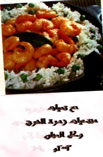 ـــــــــــــــــــــــ 1 كيلو جمبري مجمد 1 ملعقة طعام فلفل احمر بودرة 1 علبة بازلا ناضجة او كوب بازلا مثلجة مسلوقة 2 ورقة لورا 1 ملعقة ثوم مدقوق او بودرة ثوم 1 ملقعة ملح 2 كوب رز مسلوق جاهز عصير ليمون زيت للقلي ويكون غزير نوعا ما الطريقة: ـــــــــــــــــــــــ *** يغسل الجمبري ويتبل بالملح والفلفل وعصير الليمون والثوم ويترك لمدة ساعة *** يقلى في زيت حار مضاف اليه ورق اللورا(اللورة) حتى يصفر لونه *** يصفى من الزيت على مناديل مطبخ لأمتصاص الزائد من الزيت *** الأن نظيف البازلا الناضجة او المسلوقة الى الرز وهو ساخن ونقلب جيدا ثم نغرفهم في طبق فرن مفرغ من الوسط ثم نقلب الطبق لنضع الجمبري او الربيان في الوسط ونقدمه ساخنا طبق لذيذ ورائحة طبخه شهية انا عن نفسي احبه كثيرا وبالف صحة وعافية على قلوبكم وتقديري