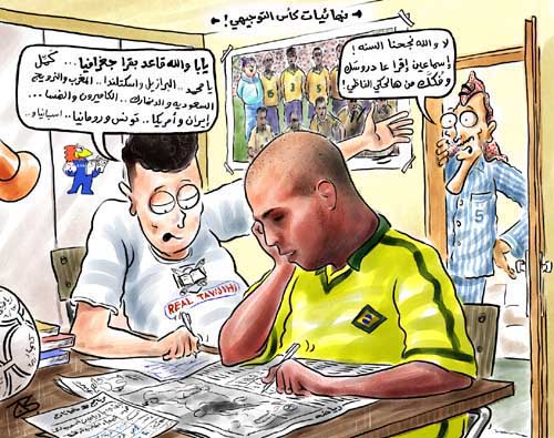 السلام عليكم ورحمة الله وبركاته ،،، أخي الكريم : الحياة كاريكاتير معبر جداً وصدقني بعض الشباب حافظين سجلات اللاعبين وحياتهم من الألف للياء ولو سألتهم عن دروسهم لا يفقهون شئ أصبحت ذاكرتهم لا يستوعب إلا الكرة وجنون الكرة الله يستر على شبابنا كل الشكر لك أخي العزيز تحيتي وصفو ودي حــــــازم [/ALIGN]